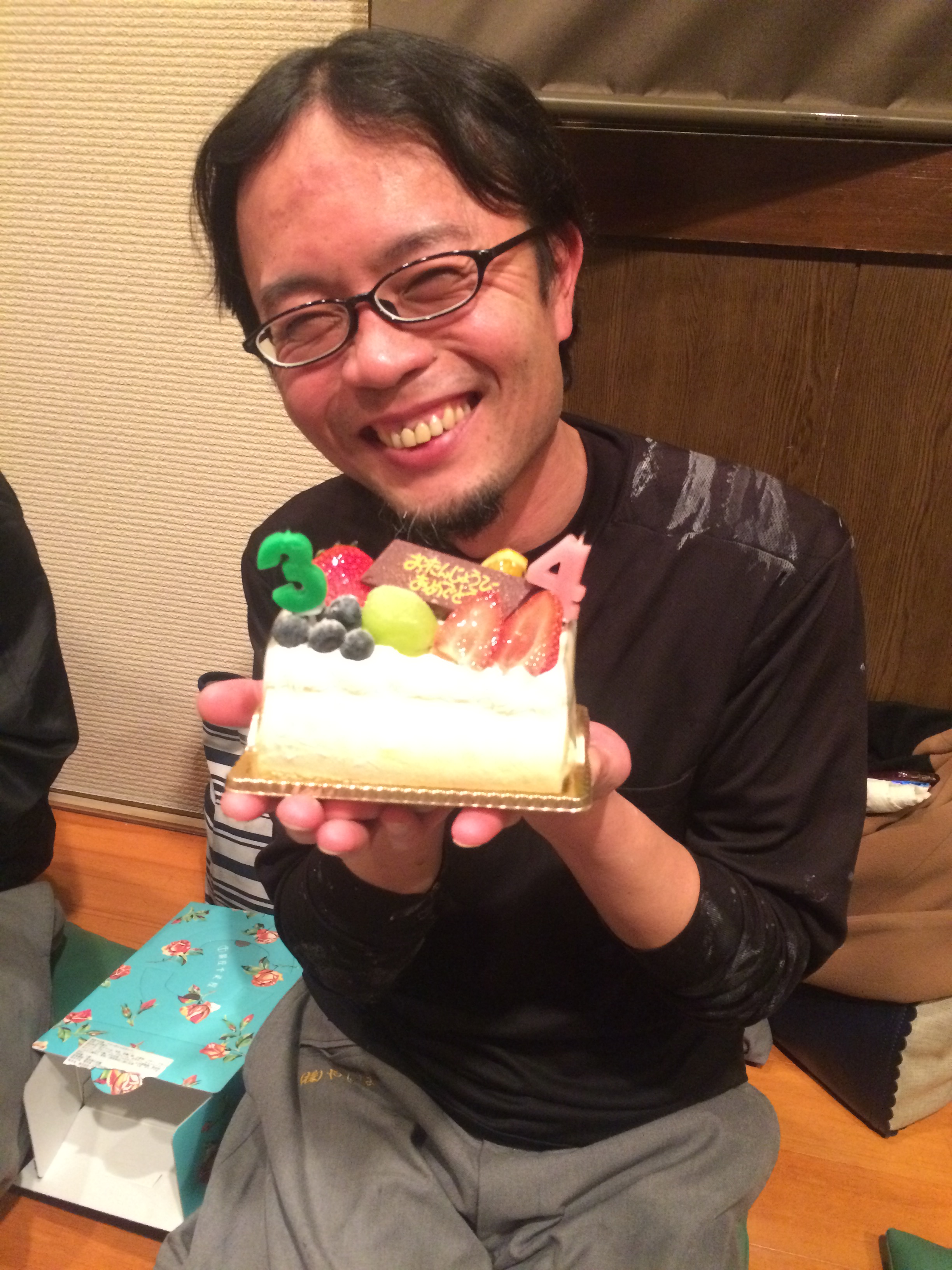 主役じゃないのにケーキをもって主役の座を奪おうとするYさんのこの笑顔・・・憎めません。