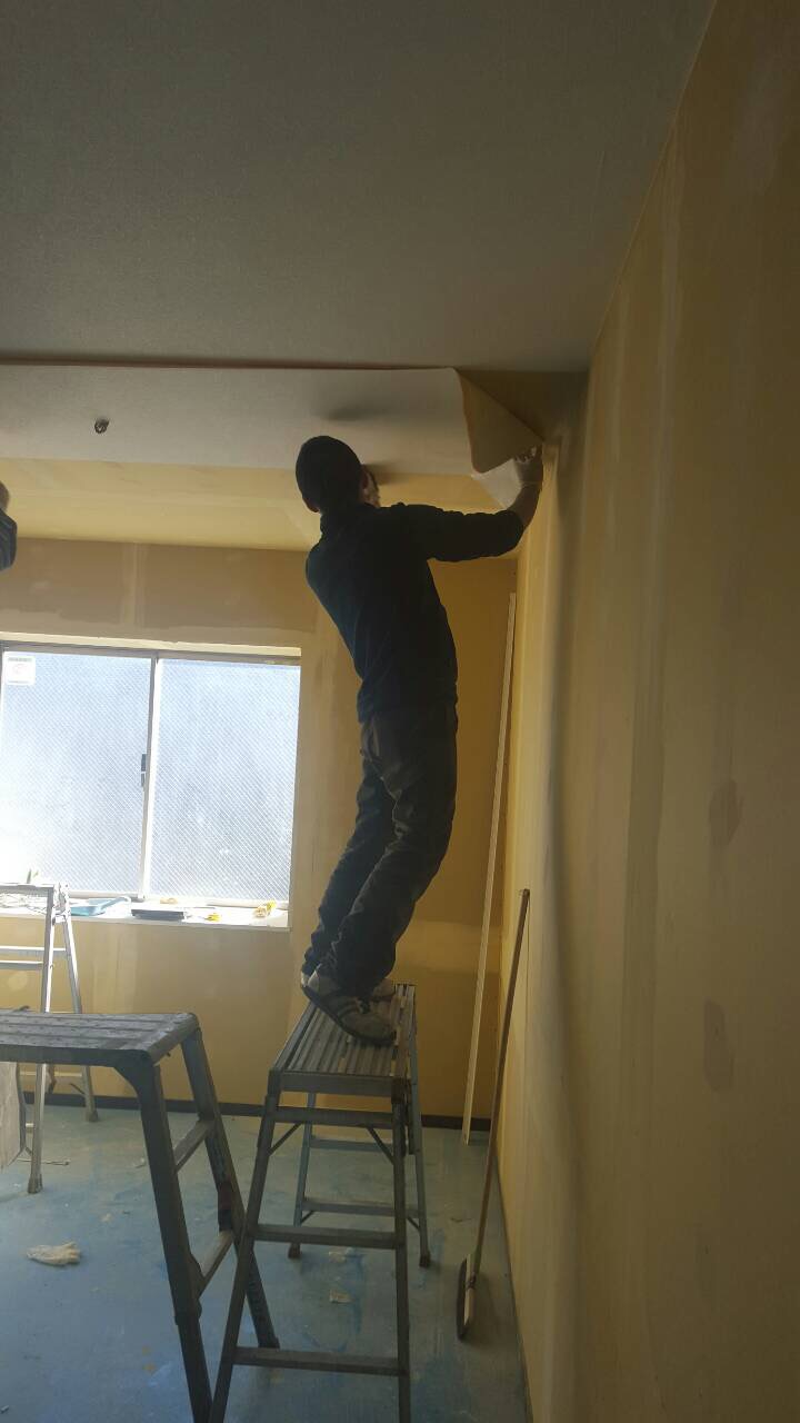 その後、社員皆でクロスや床を貼り・・・